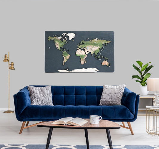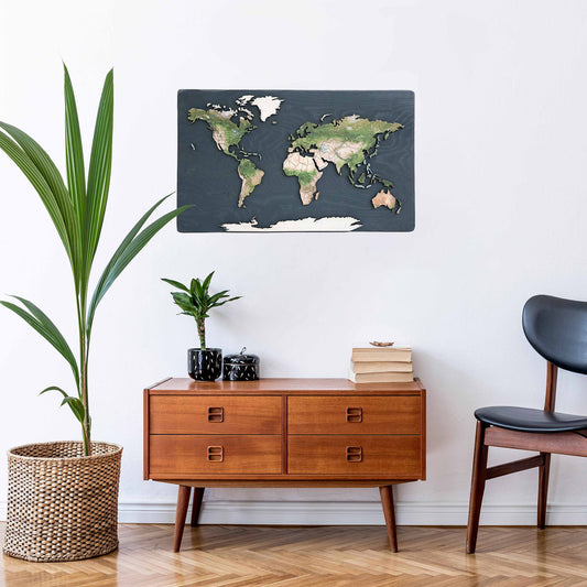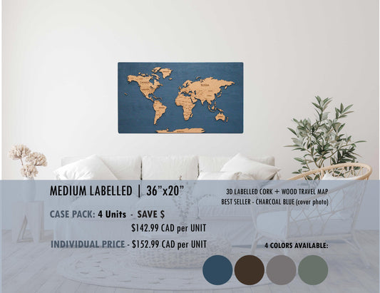 Cork & Wood 3D World Pin Map | 36 x 20 | Minimalist